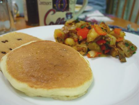Sometimes you’re just in the mood for breakfast when the day ends. We prepare some pancakes and serve home on the side (it’s just not breakfast without home fries). We normally get some help from our daughter, but she was too busy helping her little brother finish the blueberries we intended to add to the pancakes. Fortunately we kept the chocolate chips out of reach.
