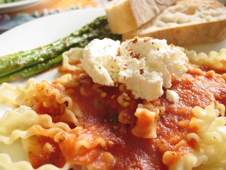 Mafalde is the main course for tonight’s dinner, which means we’re eating good. We serve it with some fresh bread and roasted asparagus. Mmmmm.