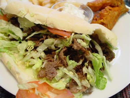 We love takeout from Bubba’s. We always get the same thing: 14 inch cheese steak sub (lettuce, tomato, mayo, provolone cheese), 12 piece order of the buffalo garlic wings, and fries. It may not be good for us, but it’s definitely good eating. Rather than paying extra for pre-packaged blue cheese sauce, we make our own.