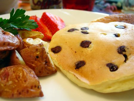 Chocolate Chip Pancakes and Roasted Potatoes