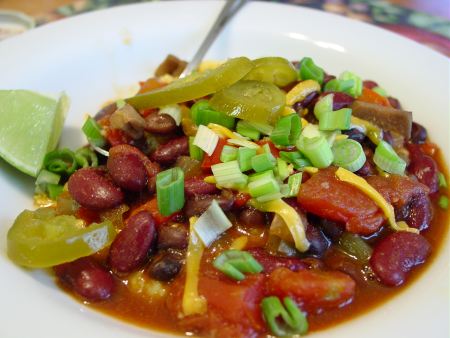 Since everybody had to adjust to the old, non-blizzard routine, we are content to enjoy a simple meal tonight. The other night‘s two bean chili re-heats quite nicely. Since we don’t like to have the exact meal again, we also add corn muffins (which were delectable) to the meal. Bacon is a by-product of the corn muffins. We’ve said it before, but it bears repeating, “any meal with bacon as a by-product is going to be excellent.”