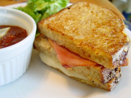 Another busy week starts off with leftovers. A weekend visit to Panera netted us more than half a plain ham and cheese sandwich that our daughter couldn’t quite finish. Mom and Dad can’t complain – she ate plenty and we make Monte Carlos with the rest. Some simple soup and salad round out the meal. Lest we forget, the meal ends with some very good brownies.