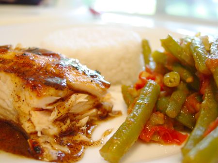 At the end of a very, very long day, we escape into the comfort of this most welcome meal. Chili honey grilled salmon signals the oncoming summer for our family. We vary the standard a little with green beans on the side.