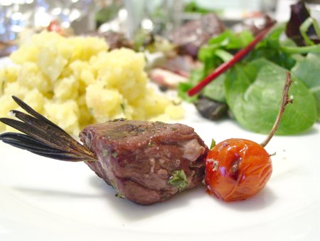 We enjoy a rarity tonight – a meal that the whole family ate! We were just using up leftovers, but the kids loved it. Both ate the grilled sirloin, the grilled veggies, and the potatoes. Our daughter was partial to the herbs and vegetables, while our son preferred the meat, but both ate well tonight.