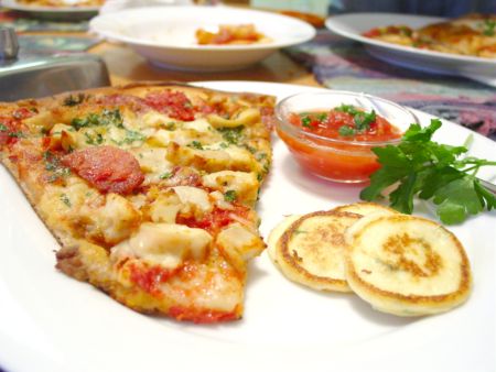 There and back again left us with pizza for dinner last night. Not that we are complaining, mind you, it was Bertucci’s pizza. We did not have quite enough for a whole meal tonight, so we experiment a little with “ricotta balls”. Living life on the edge has its rewards – tonight’s reward being delectable ricotta pancakes (the ricotta was a little wet).
