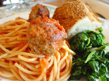 Our daughter read “Cloudy with a Chance of Meatballs” to her class on Friday. We thought it only fitting to have meatballs tonight. The Italian bread from Caputo’s was also a factor in the decision for meatballs. We had thought to serve the meatballs on the bread as meatball subs, but decided serving them over the pasta would work better for the kids. And it did.