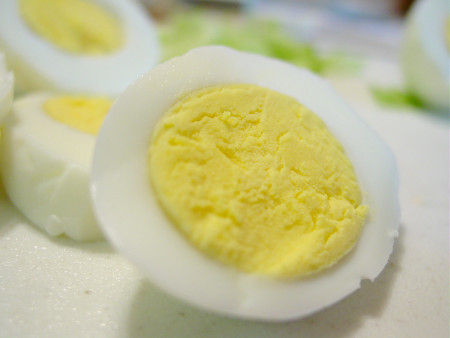 When it is time to eat one, we crack it on a paper towel lined counter and peel under running water, discarding the egg shells.