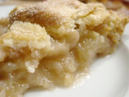 We ease the dough into the pie plate, leaving the edges of the dough hanging over the edge of the pan slightly, and cover loosely with plastic wrap. We refrigerate and repeat the rolling with the second piece of dough. When it is rolled out, we place the parchment-dough-wax paper rectangle on a large cookie sheet and refrigerate while we prepare the apples.